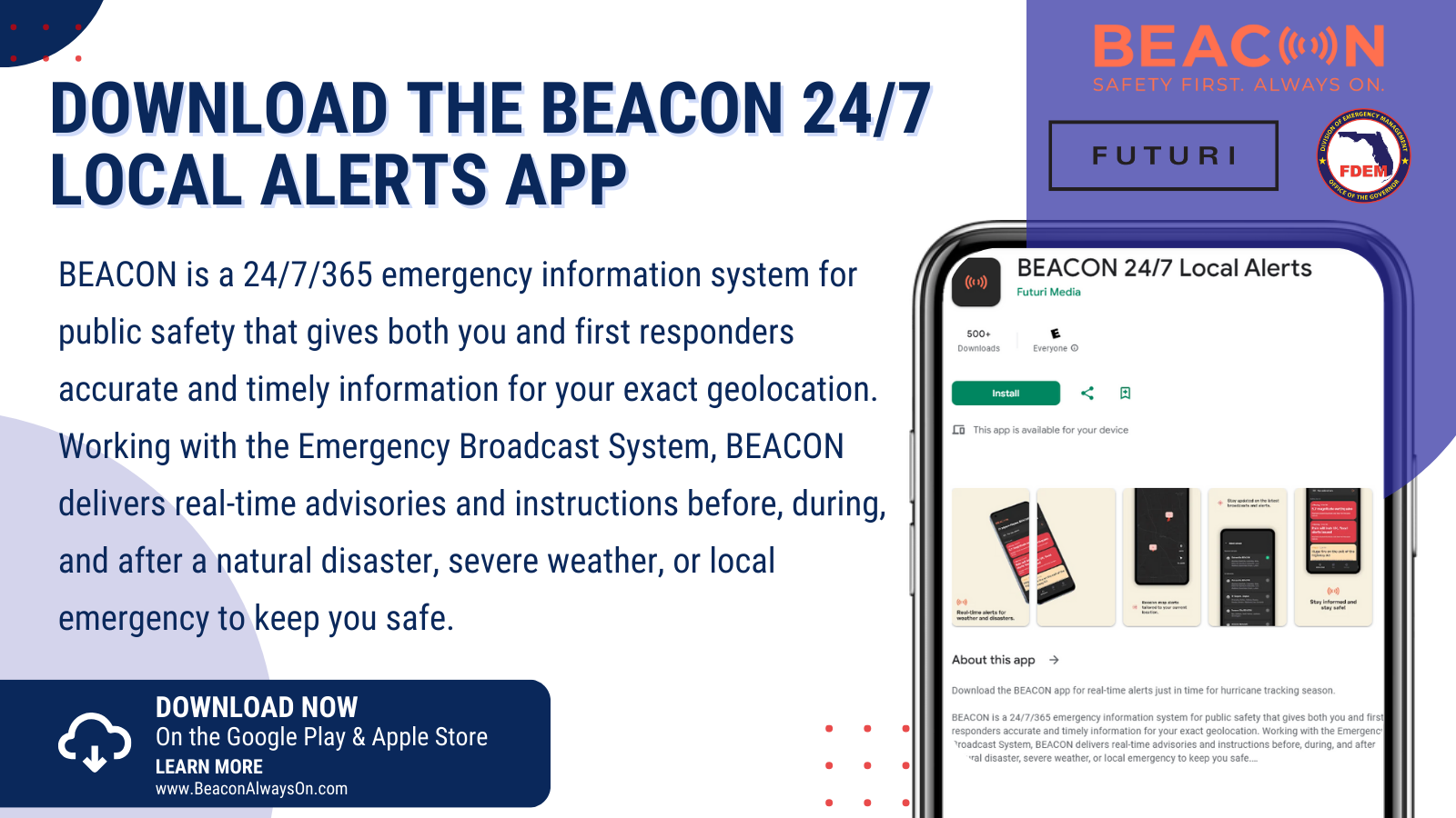 Public safety and emergency messaging content generated by the FPREN team, air and appear on the media platforms of these 13 FM partner stations or can be streamed anywhere by downloading the Florida Storms app: